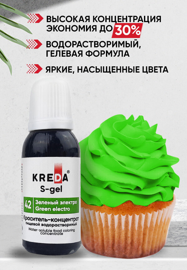 Пищевой краситель Kreda S-gel, зеленый электро, 20мл, гелевый, водорастворимый