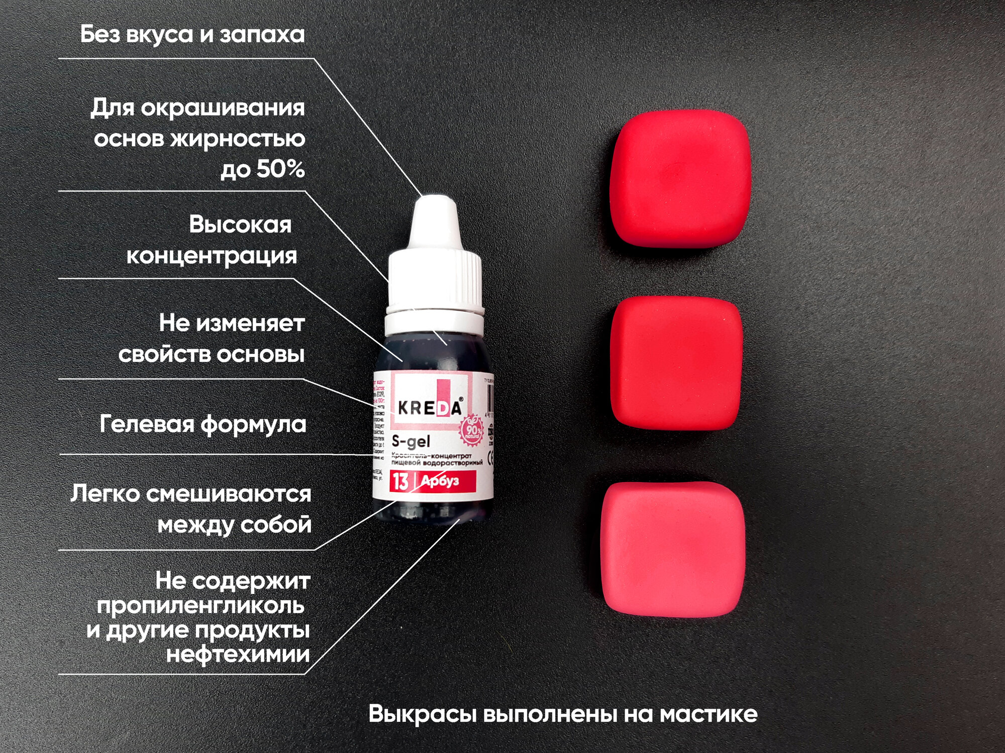 Купить Пищевой краситель Kreda S-gel, арбуз, 10 мл, гелевый, водорастворимый