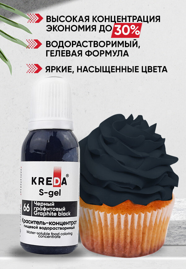 СохранитьПищевой краситель Kreda S-gel, чёрный графитовый, 10 мл, гелевый, водорастворимый интересное: