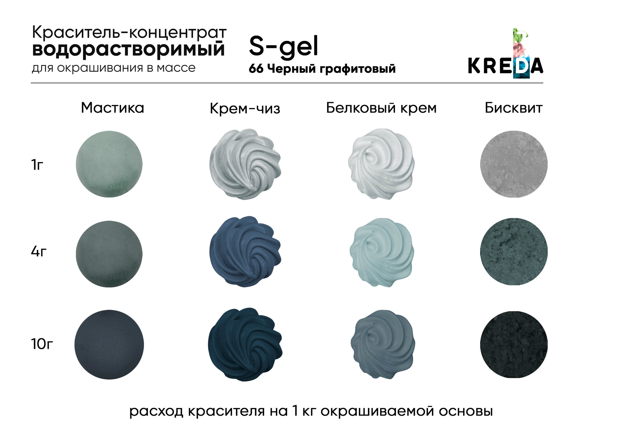 Краситель гелевый "Kreda" S-gel 66 Черный графитовый, (10 г)