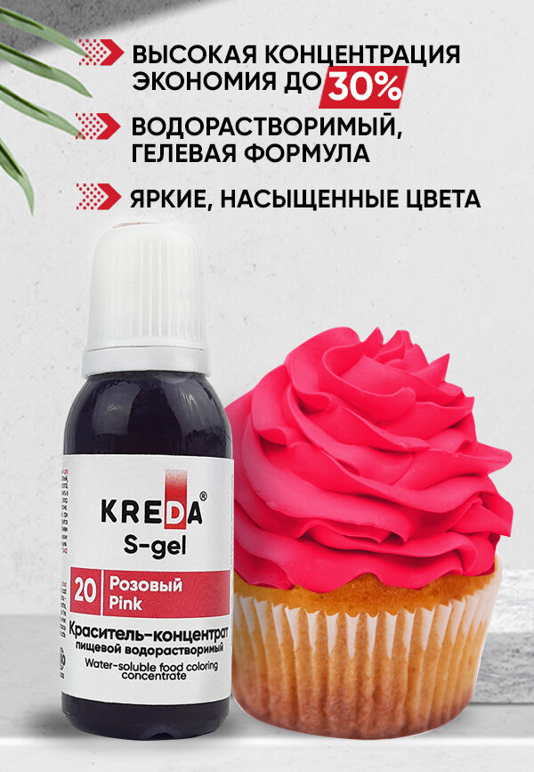 Пищевой краситель Kreda S-gel, розовый электро, 20мл, гелевый, водорастворимый