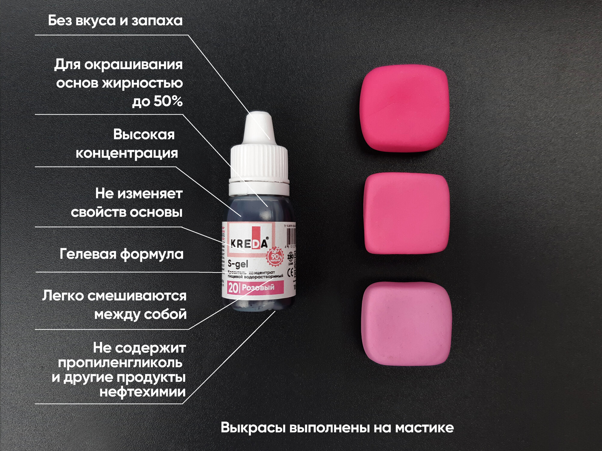 СохранитьПищевой краситель Kreda S-gel, розовый, 10 мл, гелевый, водорастворимый интересное: