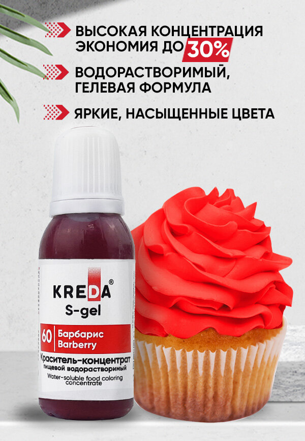 СохранитьПищевой краситель Kreda S-gel, барбарис, 10 мл, гелевый, водорастворимый интересное: