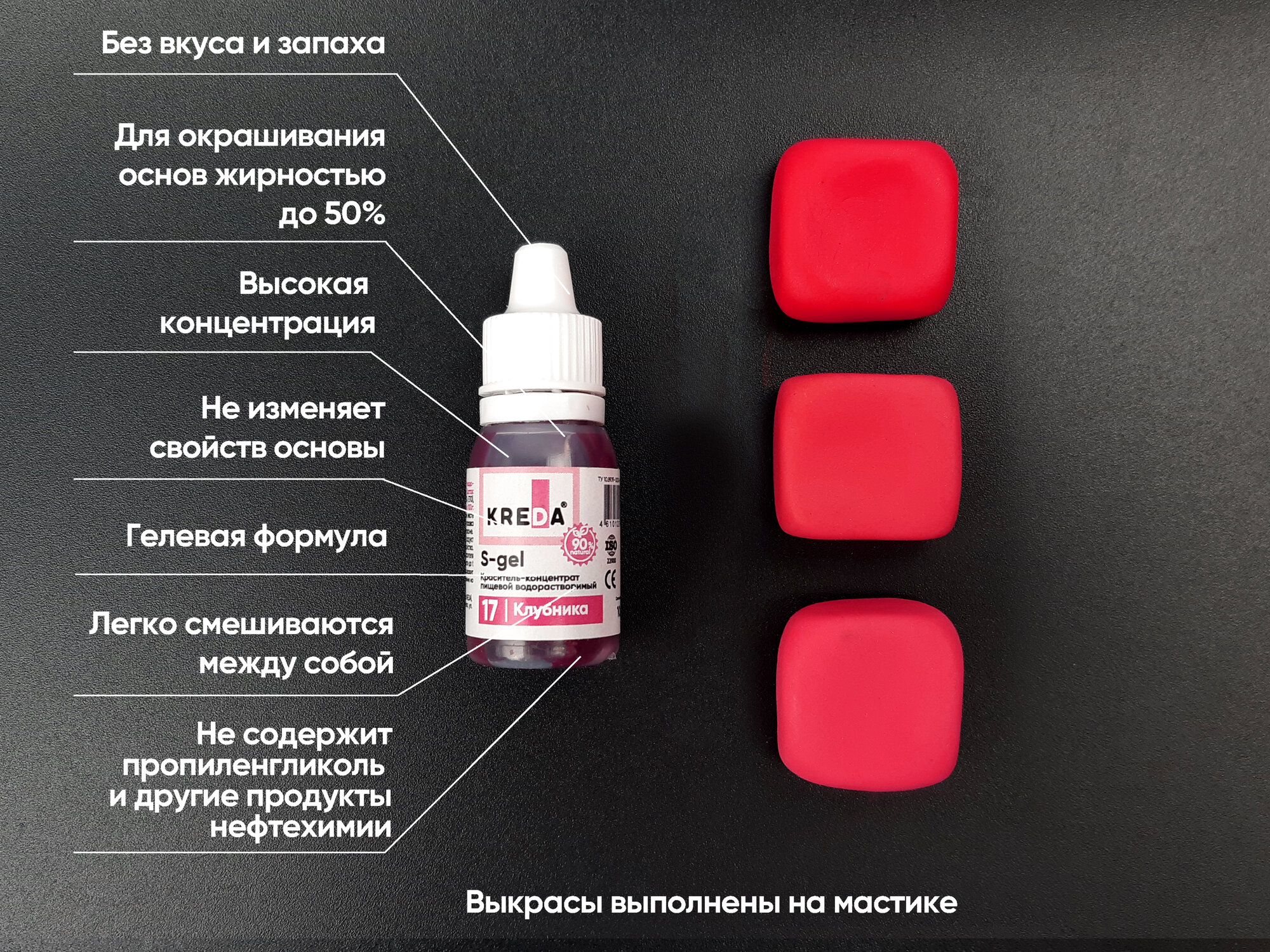 Ниже Вы можете прочитать отзывы на Пищевой краситель Kreda S-gel, клубника, 10 мл, гелевый, водорастворимый, ознакомится с подробными характеристиками, посмотреть интересные обзоры и фотографии на Пищевой краситель Kreda S-gel, клубника, 10 мл, гелевый, водорастворимый.