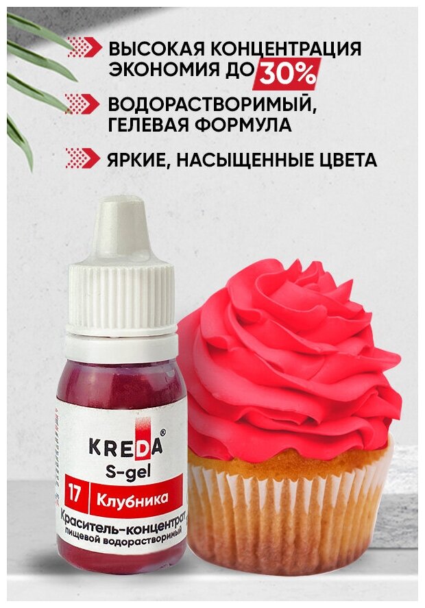 Купить Пищевой краситель Kreda S-gel, клубника, 10 мл, гелевый, водорастворимый