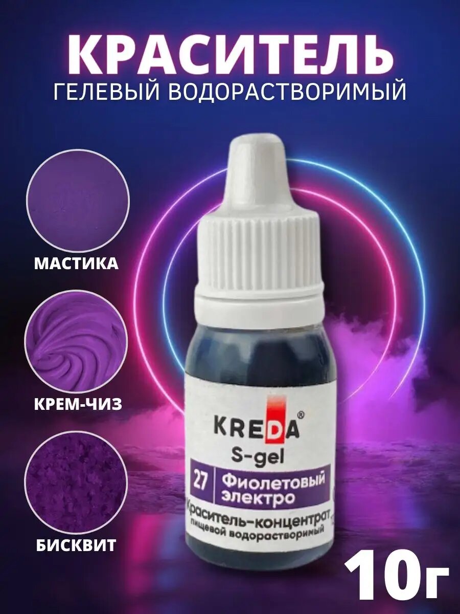 Пищевой краситель Kreda S-gel, фиолетовый электро, 10 мл, гелевый, водорастворимый