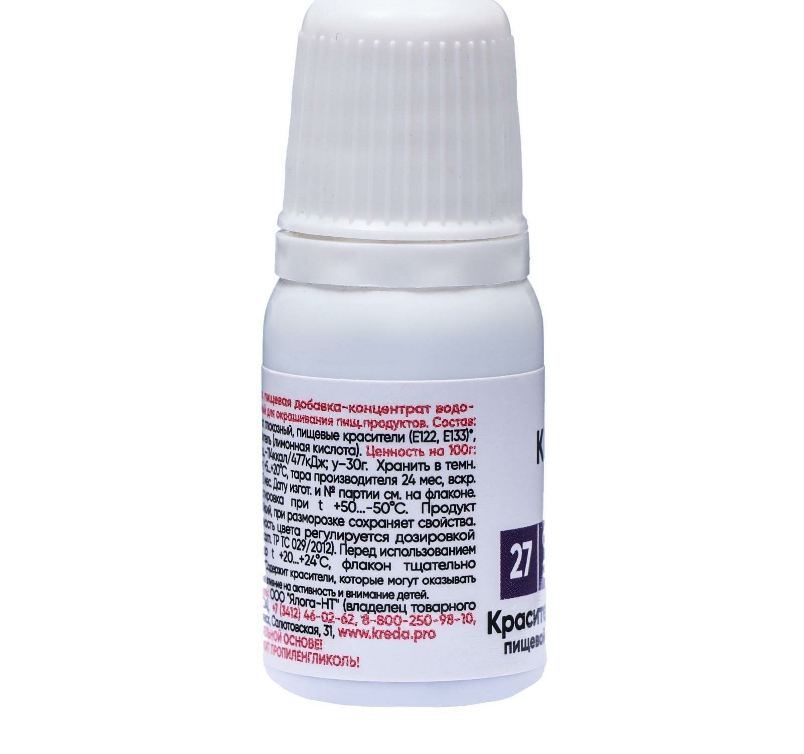 Пищевой краситель Kreda S-gel, фиолетовый, 10 мл, гелевый, водорастворимый