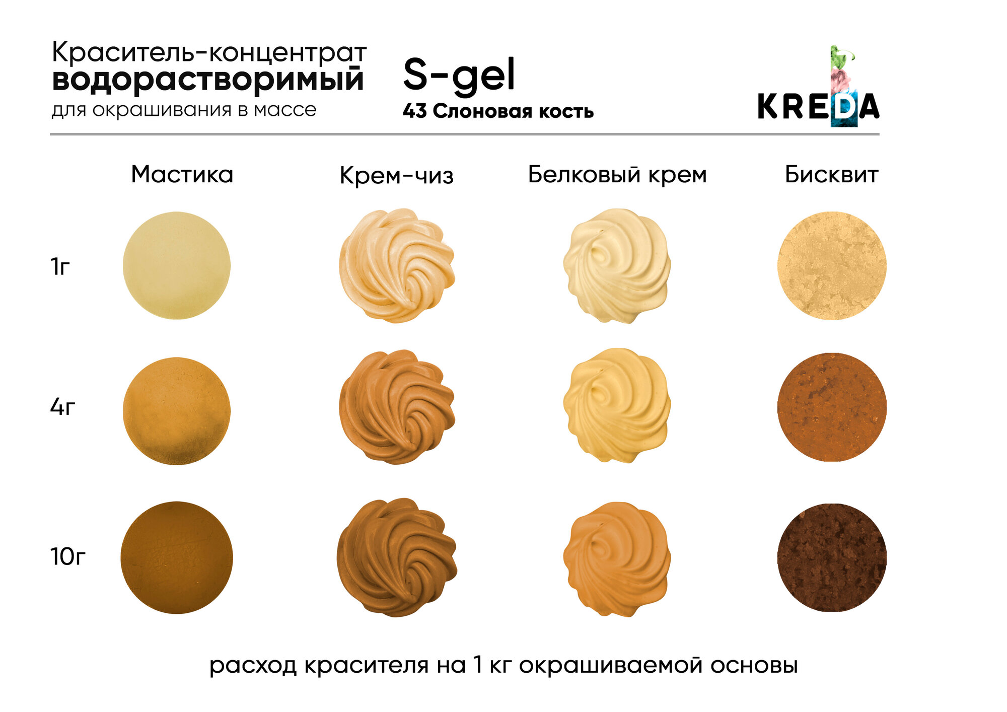 Пищевой краситель Kreda S-gel, слоновая кость, 10 мл, гелевый, водорастворимый
