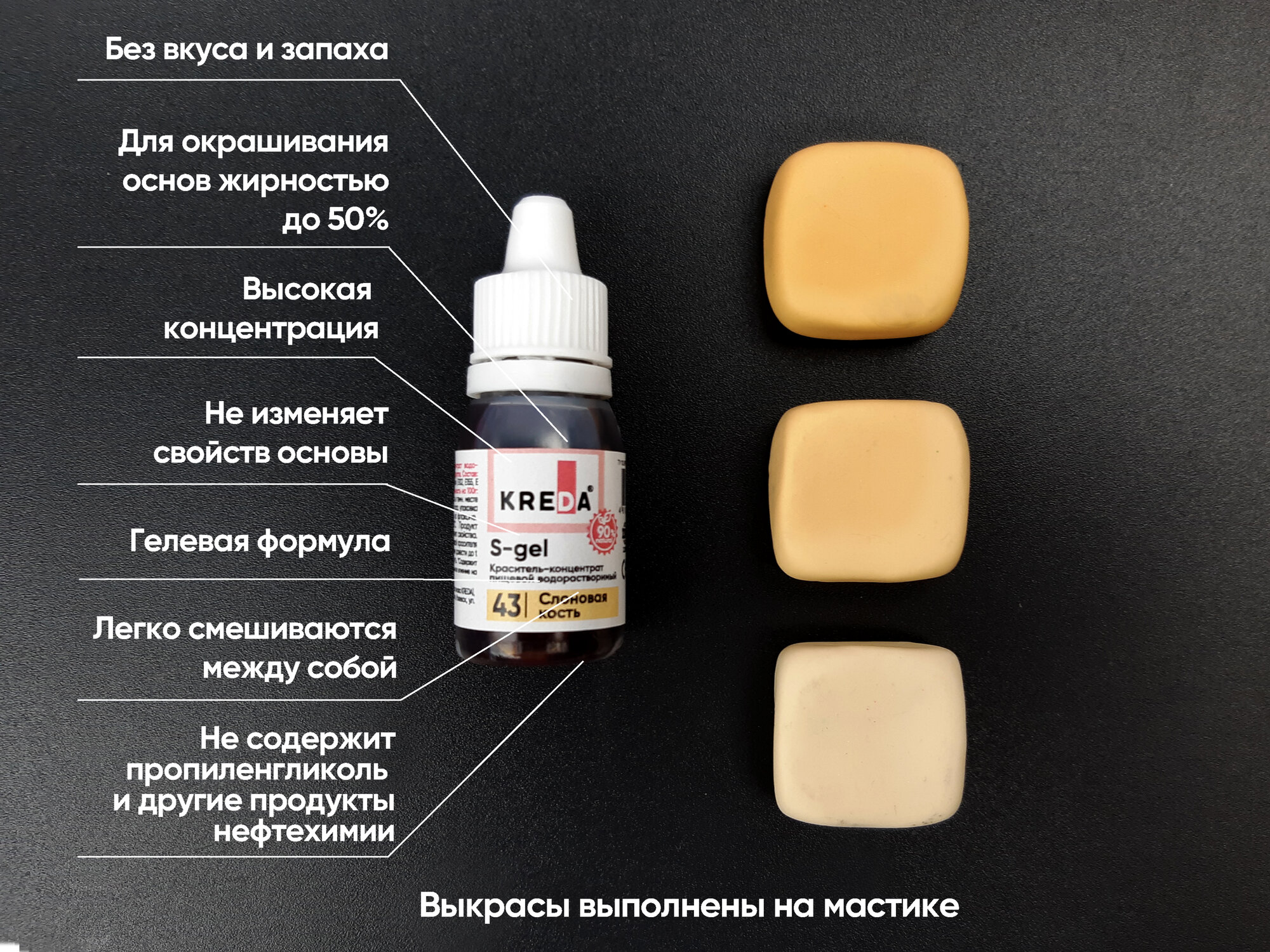 Ниже Вы можете прочитать отзывы на Пищевой краситель Kreda S-gel, слоновая кость, 20мл, гелевый, водорастворимый, ознакомится с подробными характеристиками, посмотреть интересные обзоры и фотографии на Пищевой краситель Kreda S-gel, слоновая кость, 20мл, гелевый, водорастворимый.