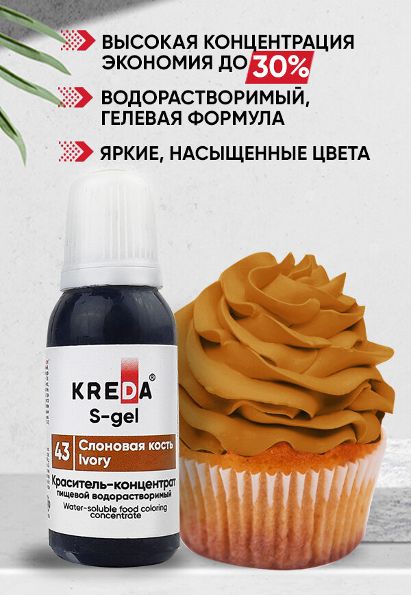 СохранитьПищевой краситель Kreda S-gel, слоновая кость, 20мл, гелевый, водорастворимый интересное: