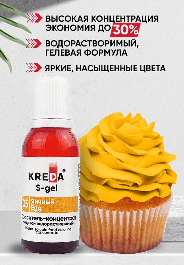Купить Пищевой краситель Kreda S-gel, яичный, 20мл, гелевый, водорастворимый