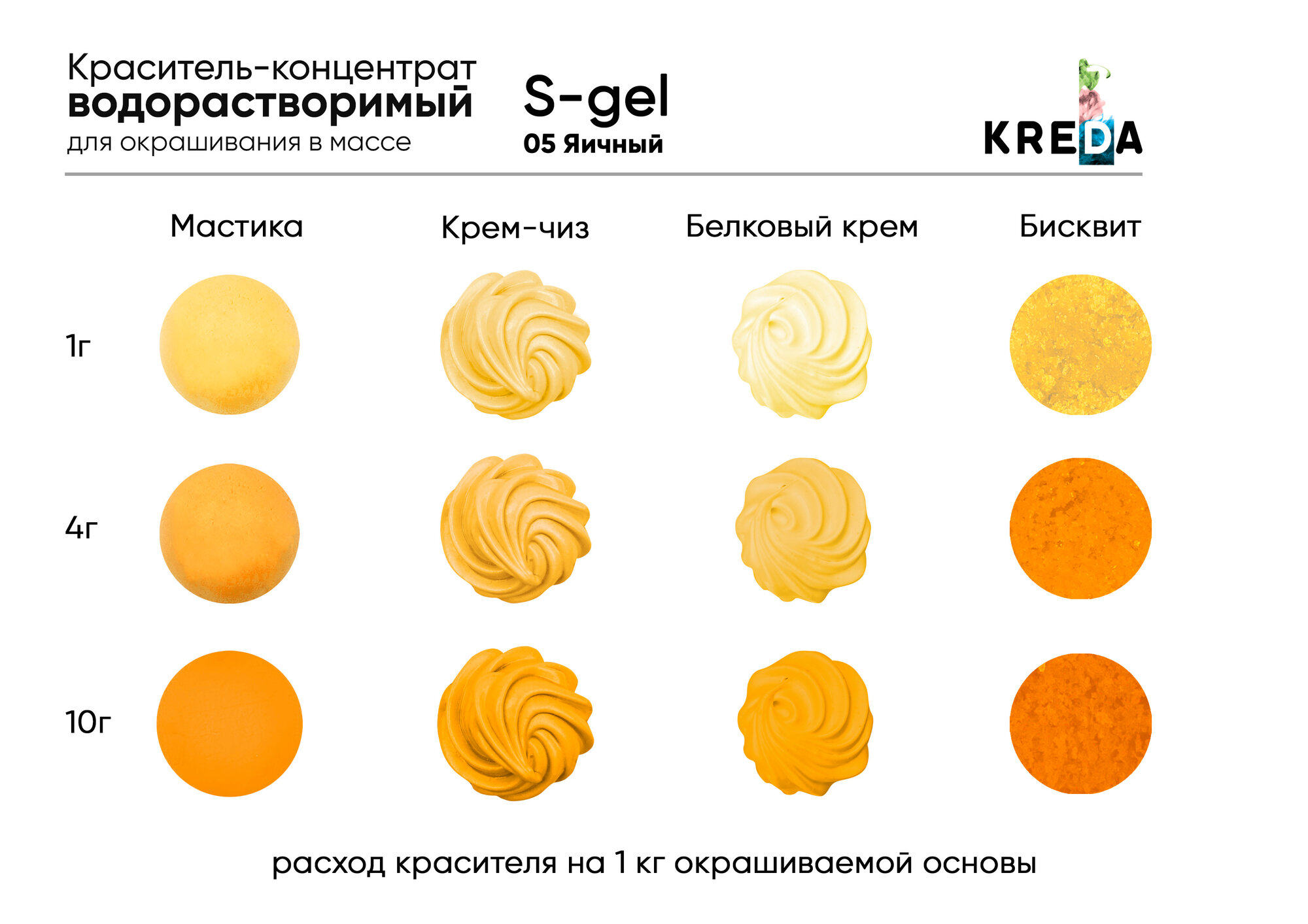 Пищевой краситель Kreda S-gel, яичный, 10 мл, гелевый, водорастворимый