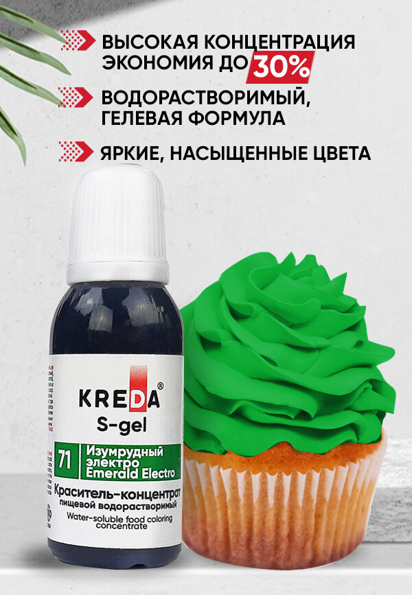 Пищевой краситель Kreda S-gel, зеленый электро, 20мл, гелевый, водорастворимый