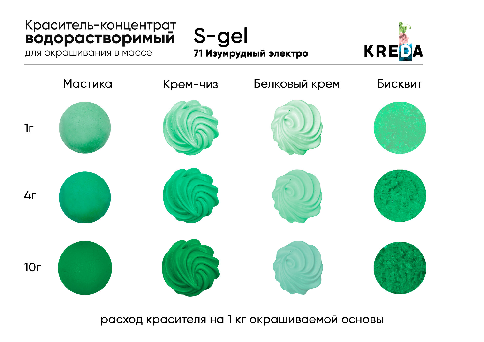 Краситель гелевый "Kreda" S-gel 71 Изумрудный электро, (10 г)