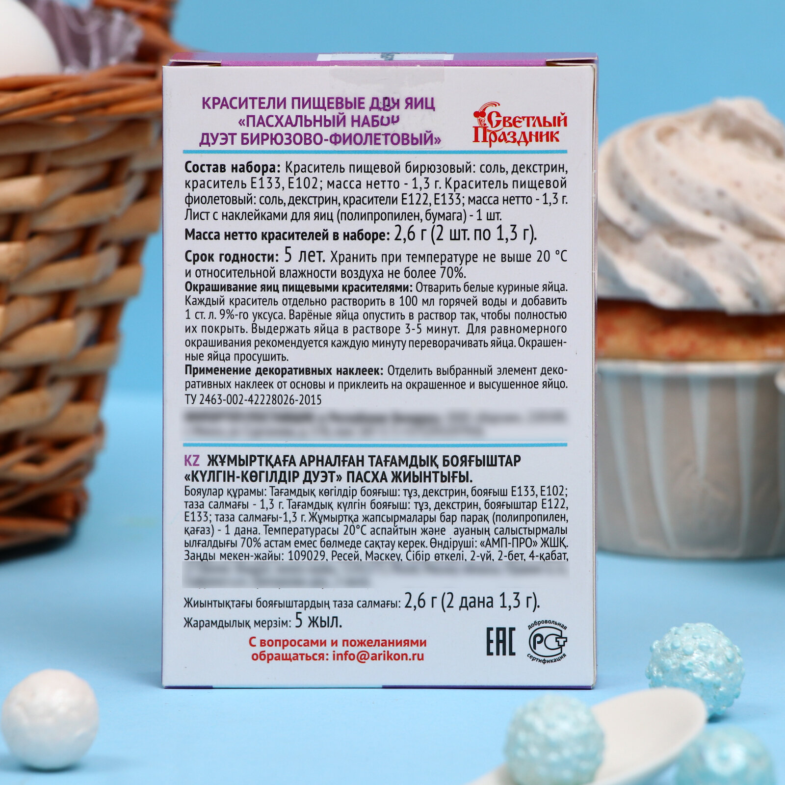 Купить Красители пищевые для яиц "Пасх. набор "дуэт бирюзово-фиолетовый", 2,6г 1шт.