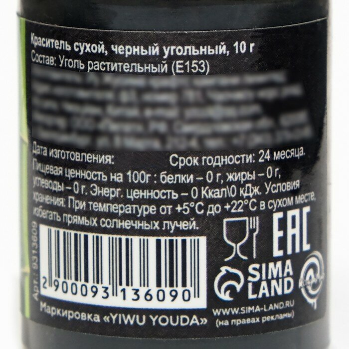 Купить Краситель сухой "Кондимир" черный угольный, 10 г
