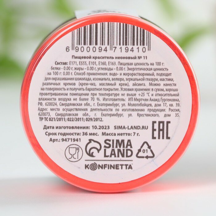 Краситель неоновый пасха KONFINETTA, коралловый, 7 г. интересное: