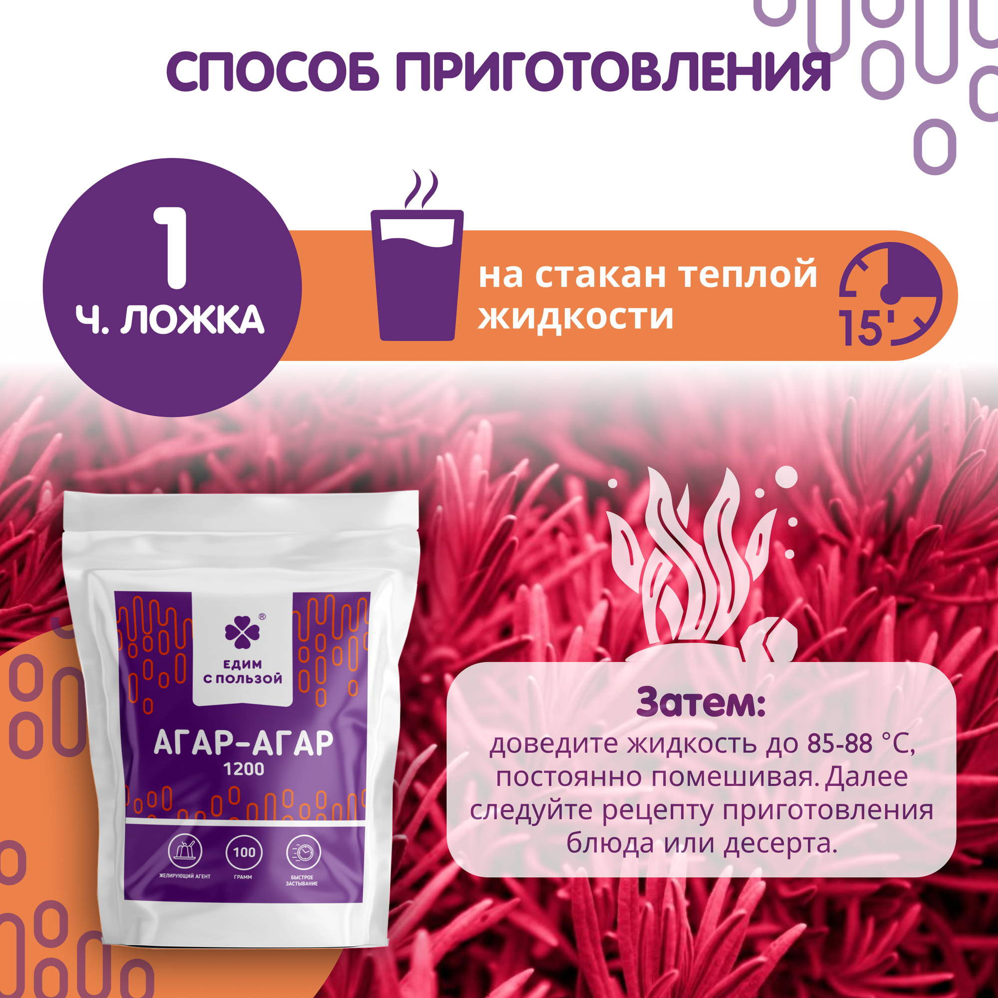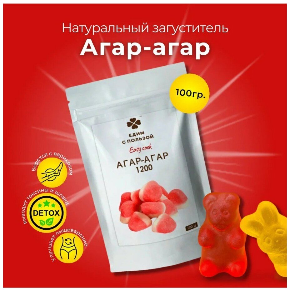 Агар-агар 1200, натуральный пищевой загуститель, для десертов, замена желатина / VEGAN / Едим С пользой 100г интересное:
