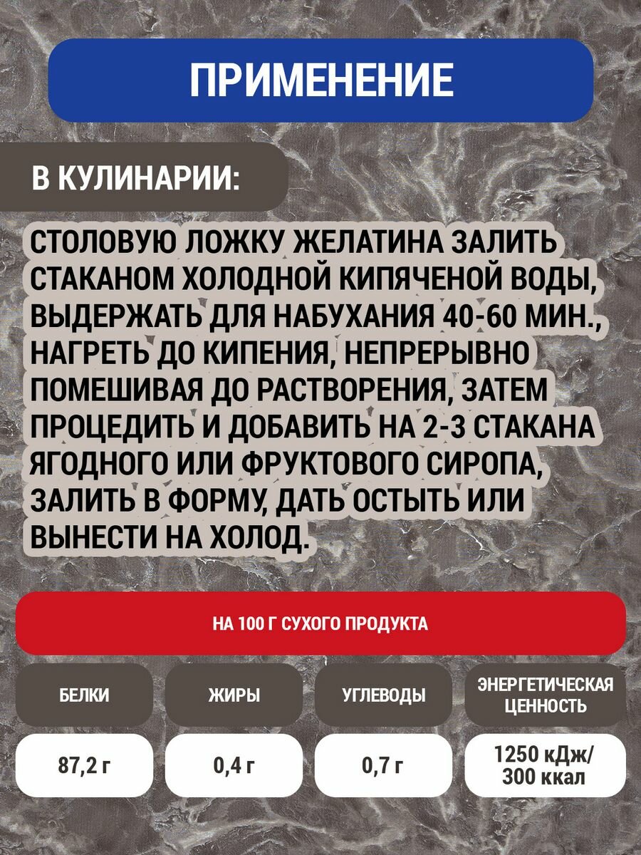 Желатин пищевой говяжий 400г интересное: