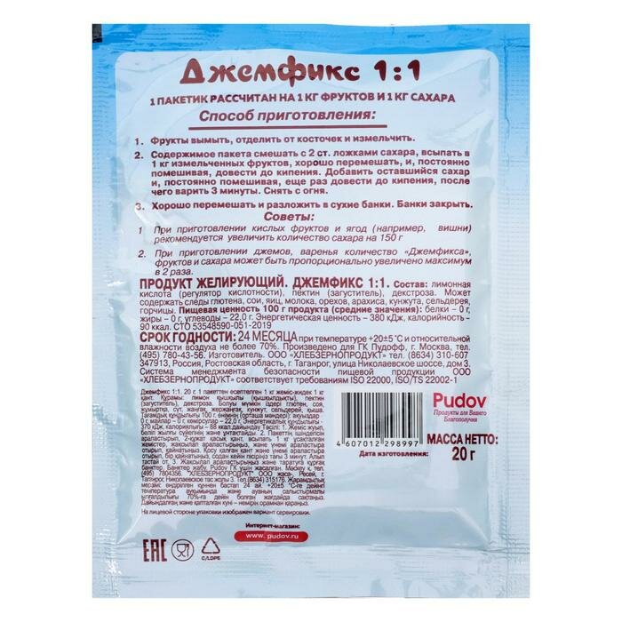 Джемфикс «С. Пудовъ» 1:1, 20 г интересное: