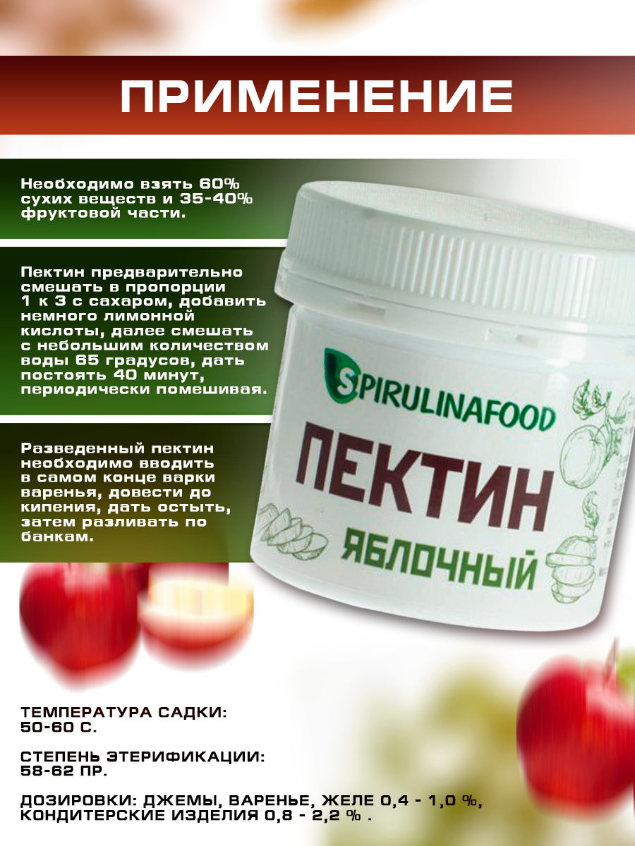 | Состав | 100% яблочный пектин |