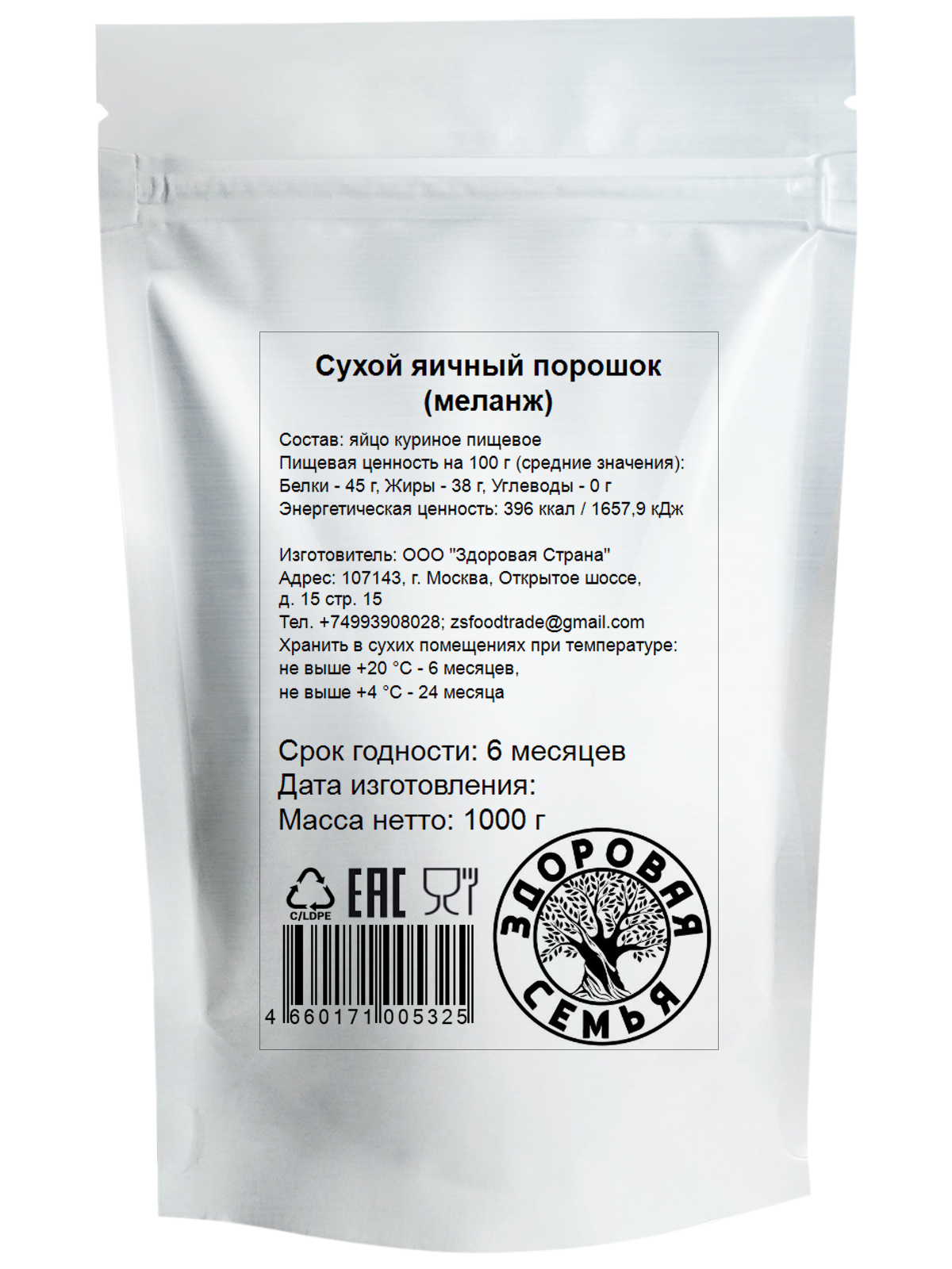 Сухой яичный порошок (меланж) ТУ, Здоровая Семья, 1 кг (1000 г), для омлета и выпечки