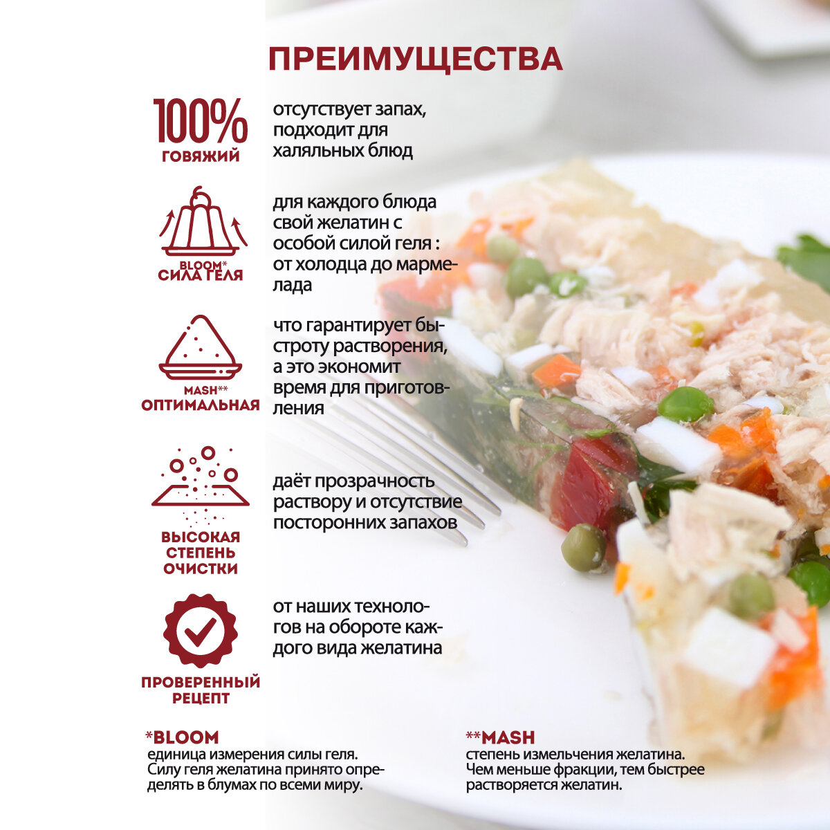| Состав | Состав: желатин пищевой. Может содержать следы глютена, яиц, молока, сои, орехов, арахиса, кунжута, сельдерея, горчицы. |