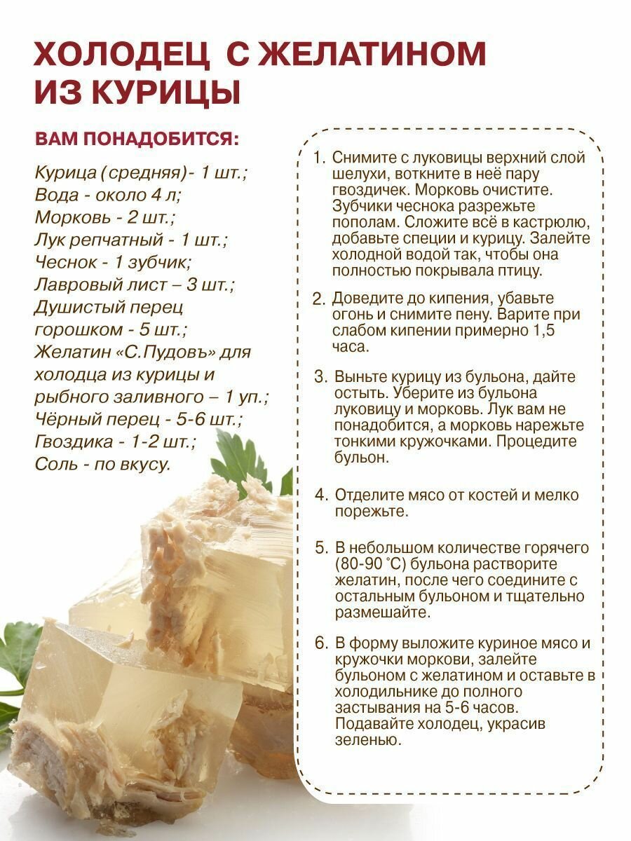Желатин для холодца из курицы, заливного из рыбы С.Пудовъ, 30 г интересное: