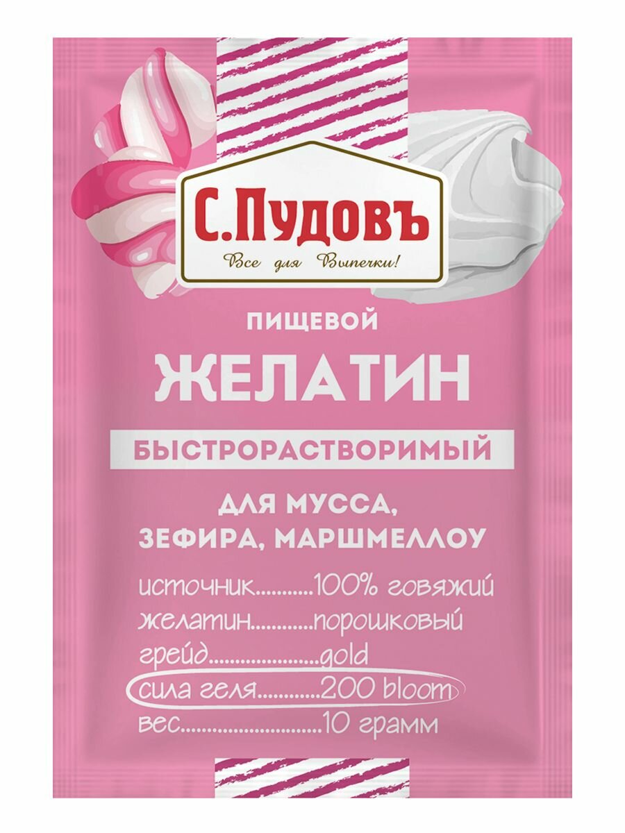 Желатин для мусса, зефира, маршмеллоу С.Пудовъ, 10 г интересное: