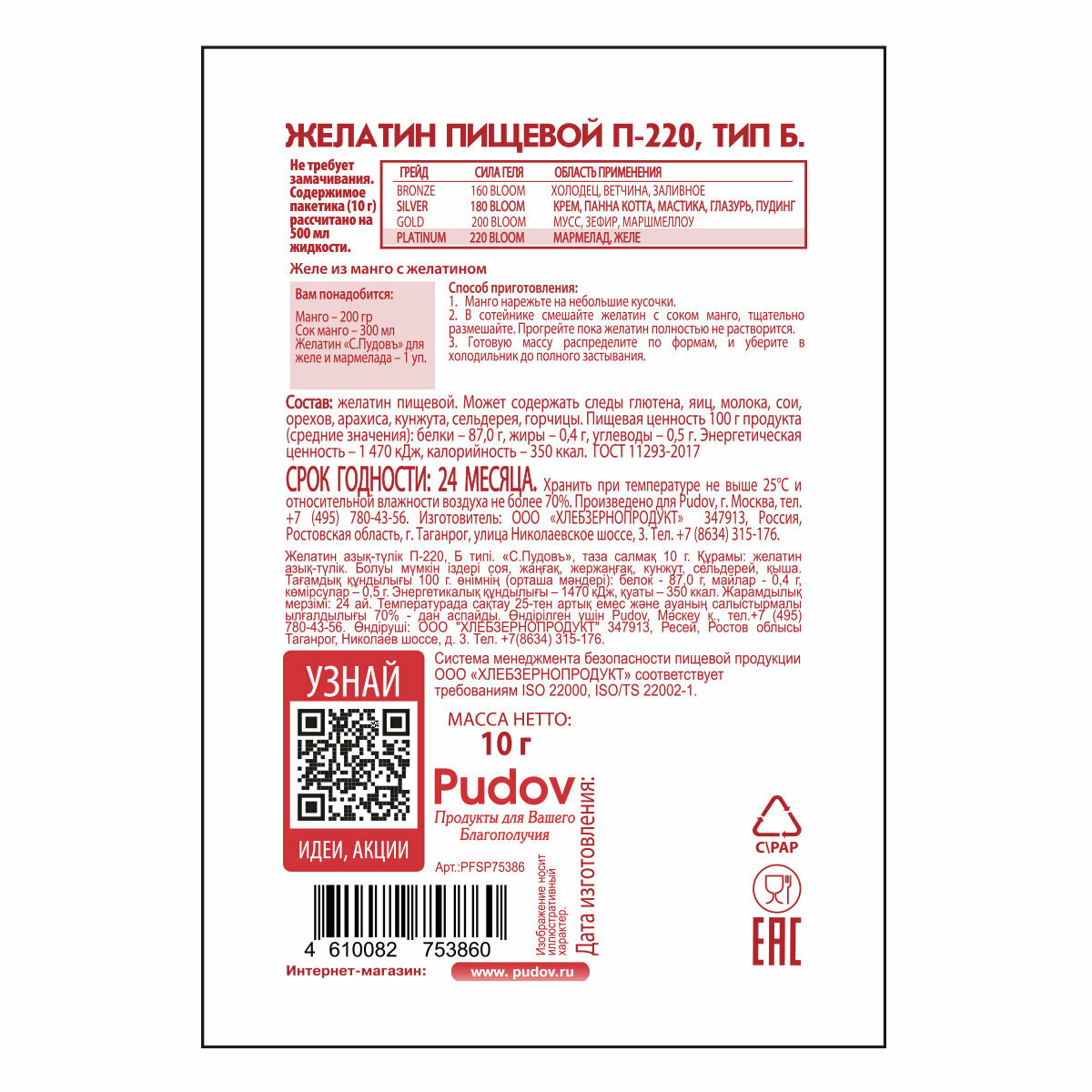 Желатин для желе, мармелада С.Пудовъ, 10г интересное: