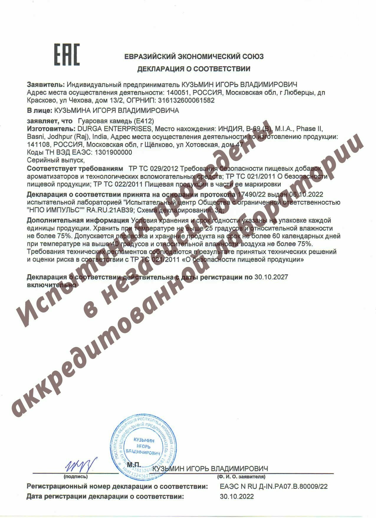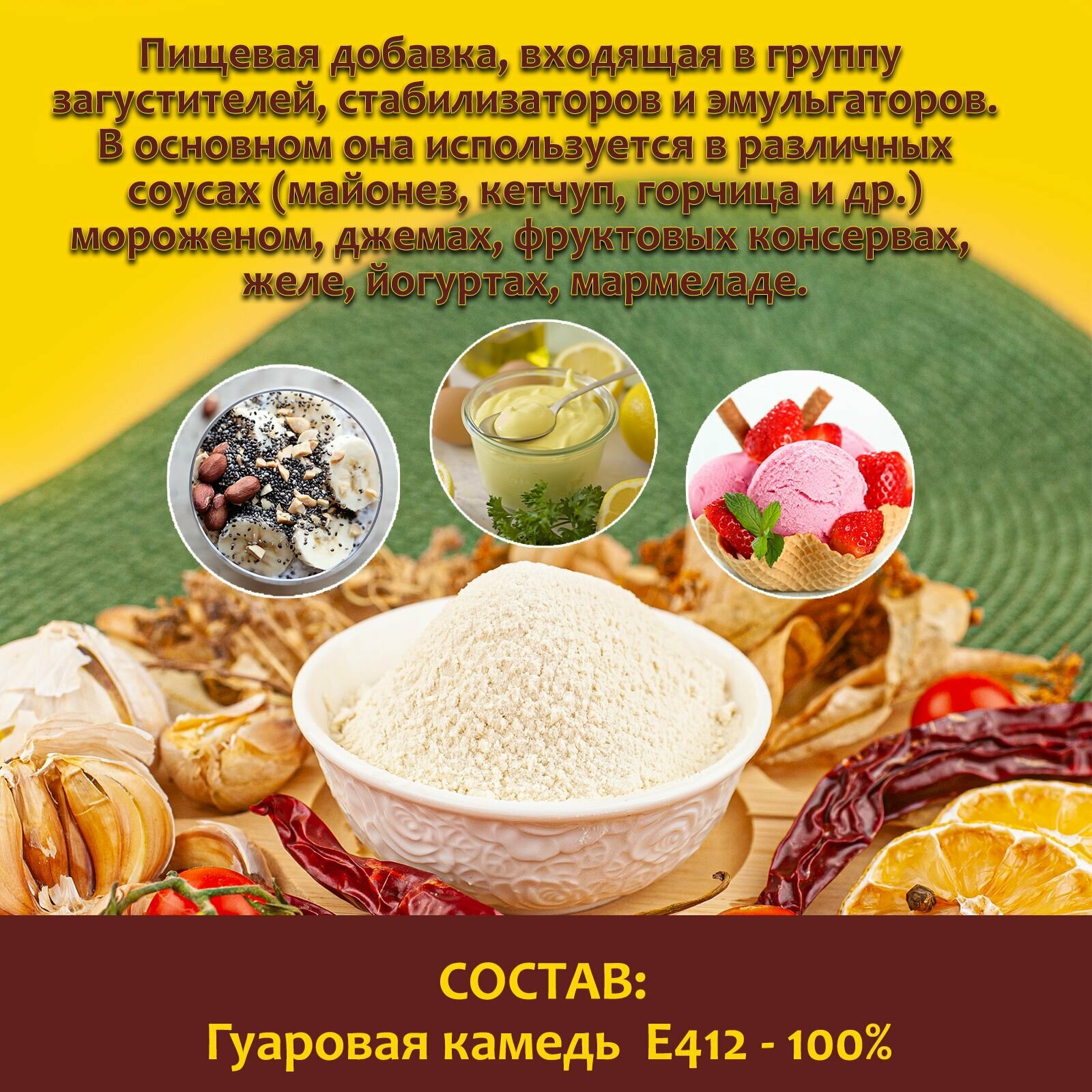 | Состав | Гуаровая камедь пищевая Е412 |
