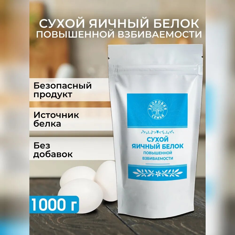 Сухой яичный белок повышенной взбиваемости, Здоровая Семья, порошок, 1 кг (1000 г), обессахаренный интересное: