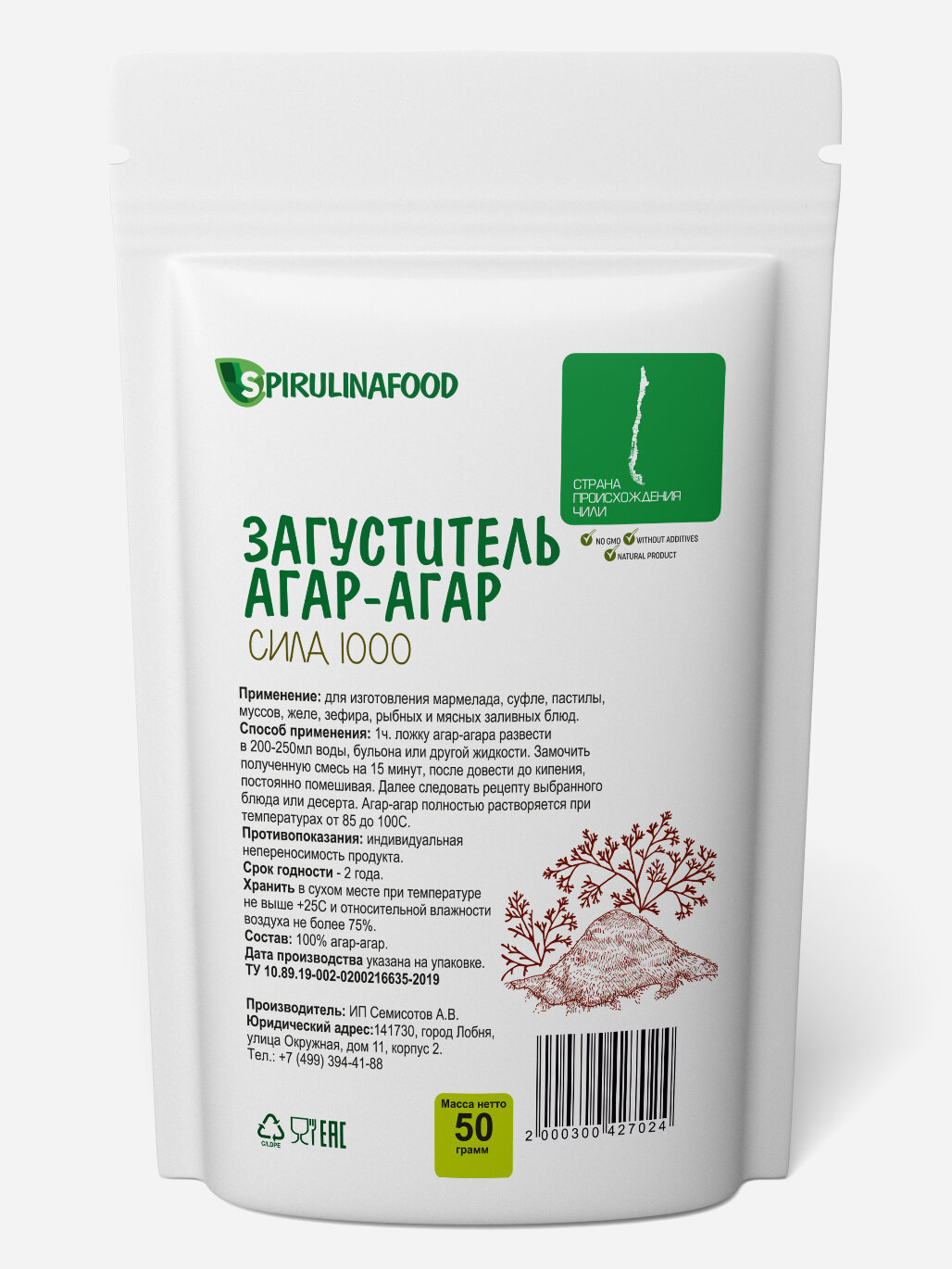 | Состав | 100% агар-агар |
