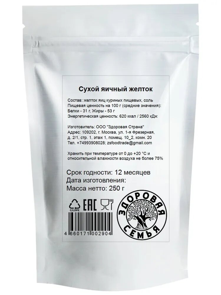 Купить Сухой яичный желток, Здоровая Семья, порошок, 250 г