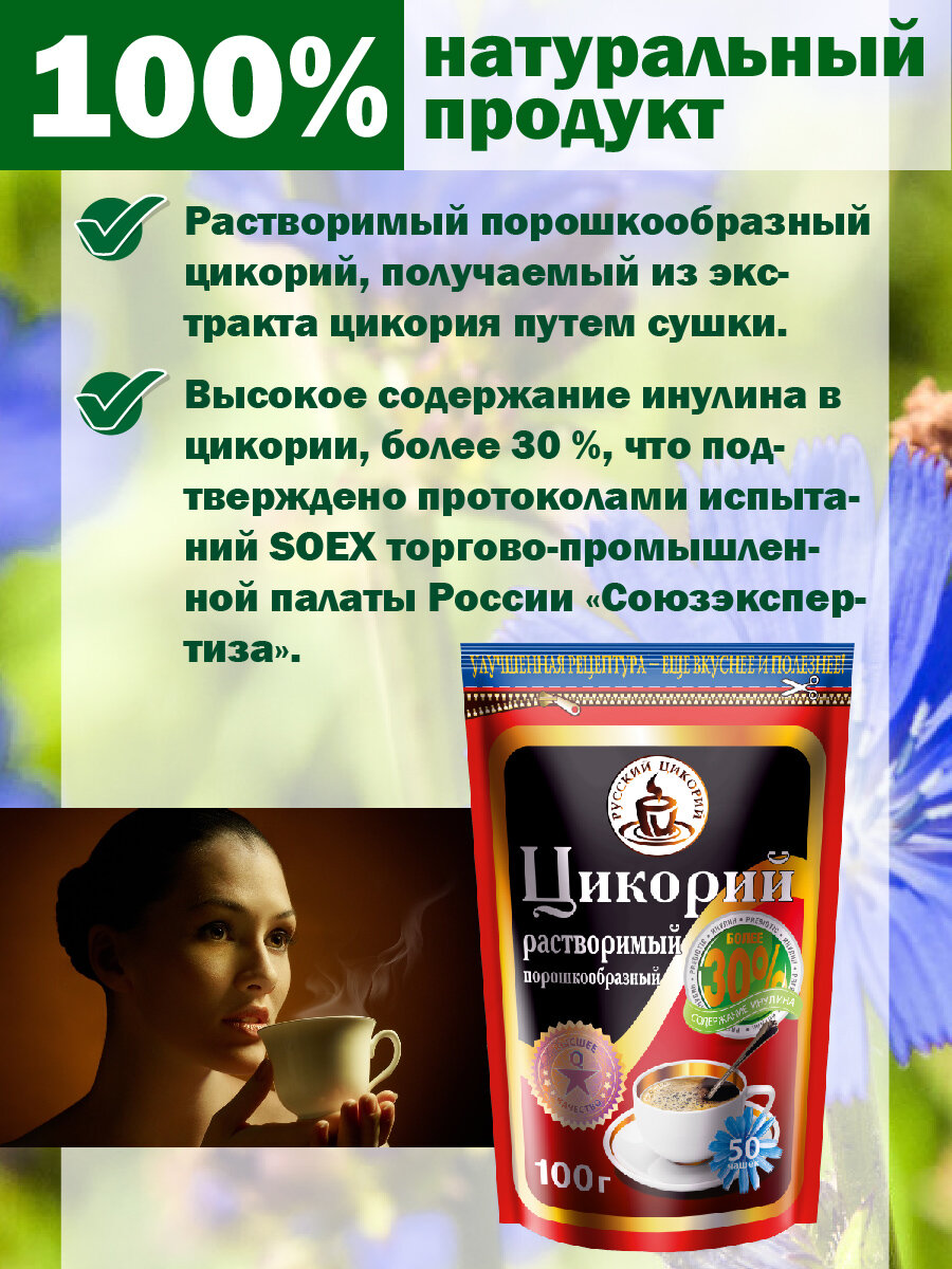 Ниже Вы можете прочитать отзывы на Цикорий Русский цикорий, растворимый, дойпак, 100 г, 3 уп, ознакомится с подробными характеристиками, посмотреть интересные обзоры и фотографии на Цикорий Русский цикорий, растворимый, дойпак, 100 г, 3 уп.