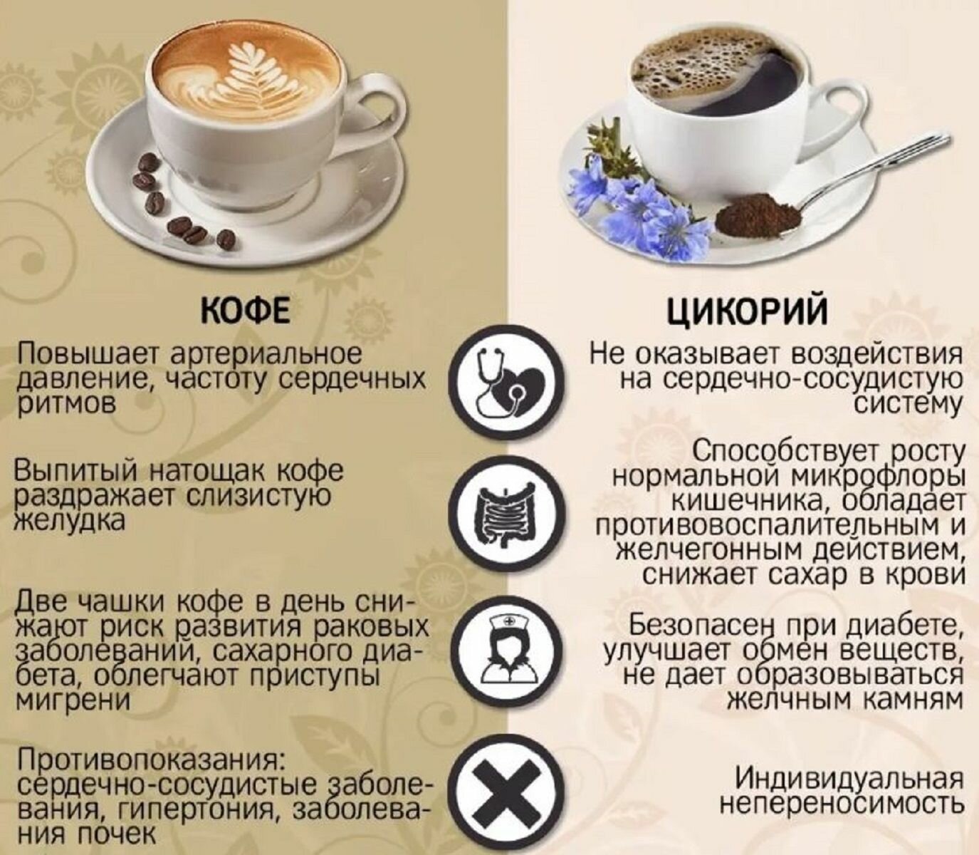 | Способ приготовления | положить в чашку 2-3 чайные ложки (5 г) цикория; залить горячей кипяченой водой и размешать; сахар и сливки добавить по вкусу |