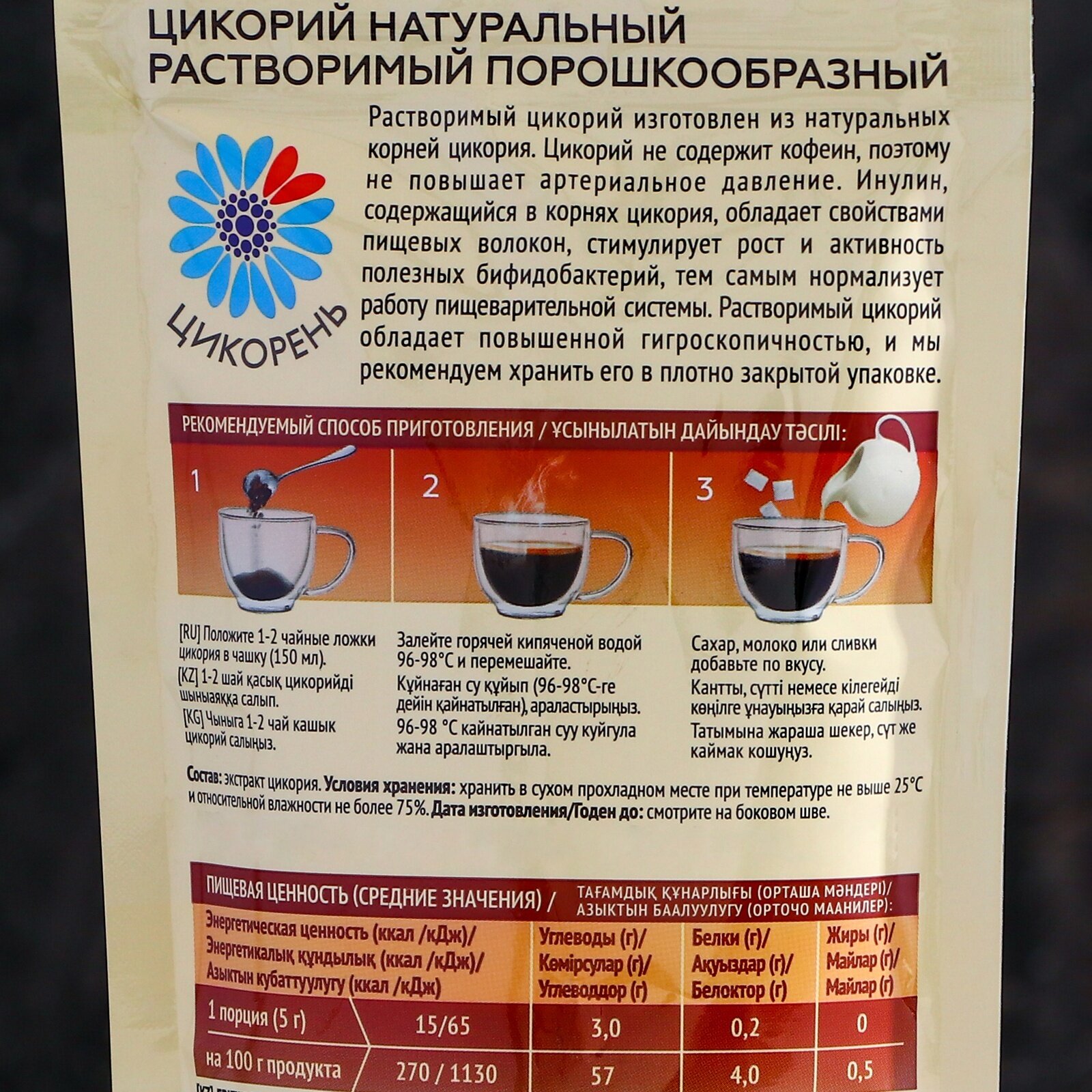 | Сырье | цикорий |