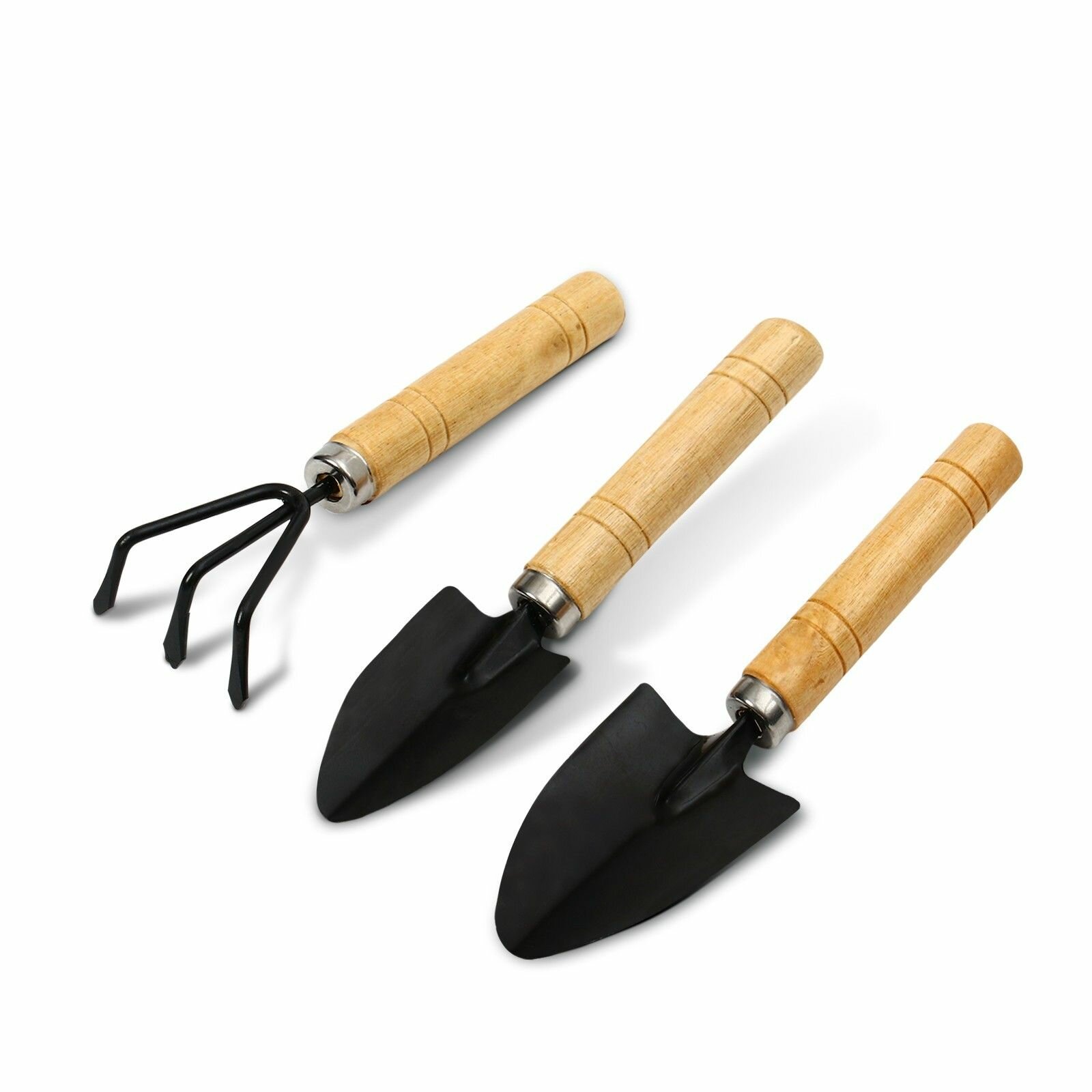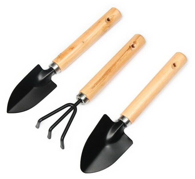 Набор садового инструмента, 3 предмета: грабли, 2 лопатки, длина 24 см, деревянные ручки