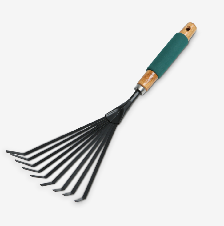 Купить Грабли малые, веерные, пластинчатые, 9 зубцов, длина 42 см, металл, деревянная ручка с поролоном, Greengo