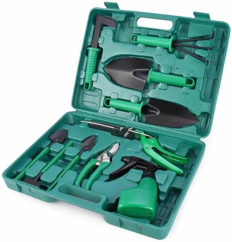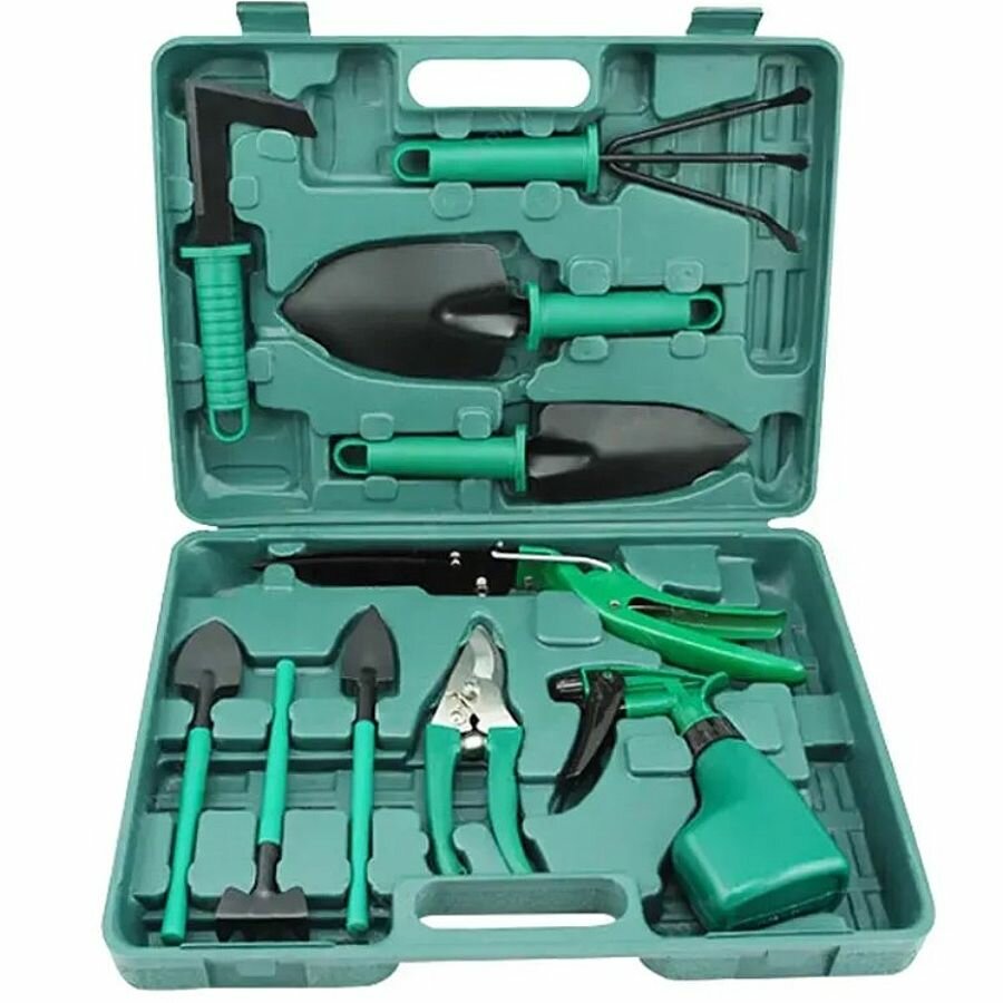 Купить Набор садовых инструментов 10 в 1 для прополки и посадки растений в зеленом кейсе