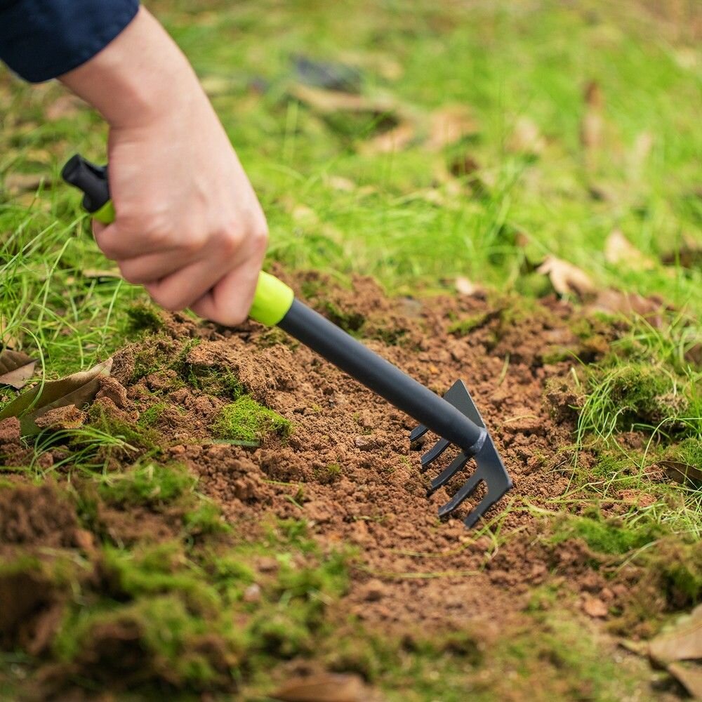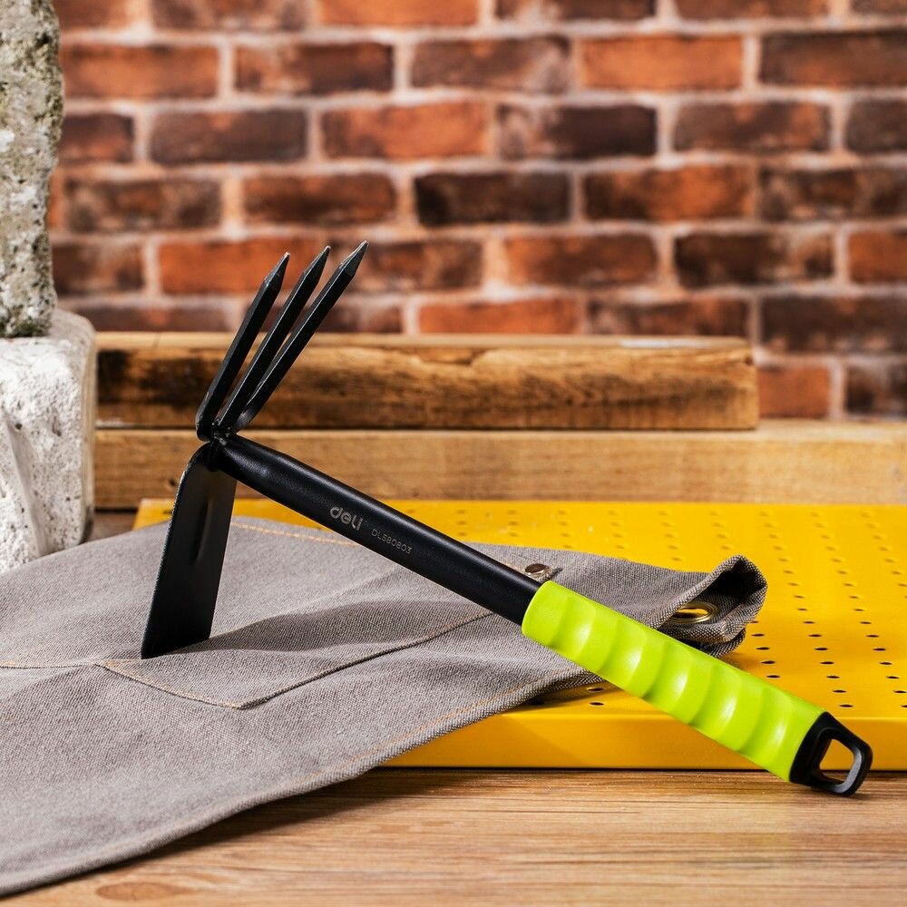 Набор садового инструмента (лопатка, двусторонняя мотыжка, пятизубчатые грабли) Deli DL580803 длина 31 см интересное: