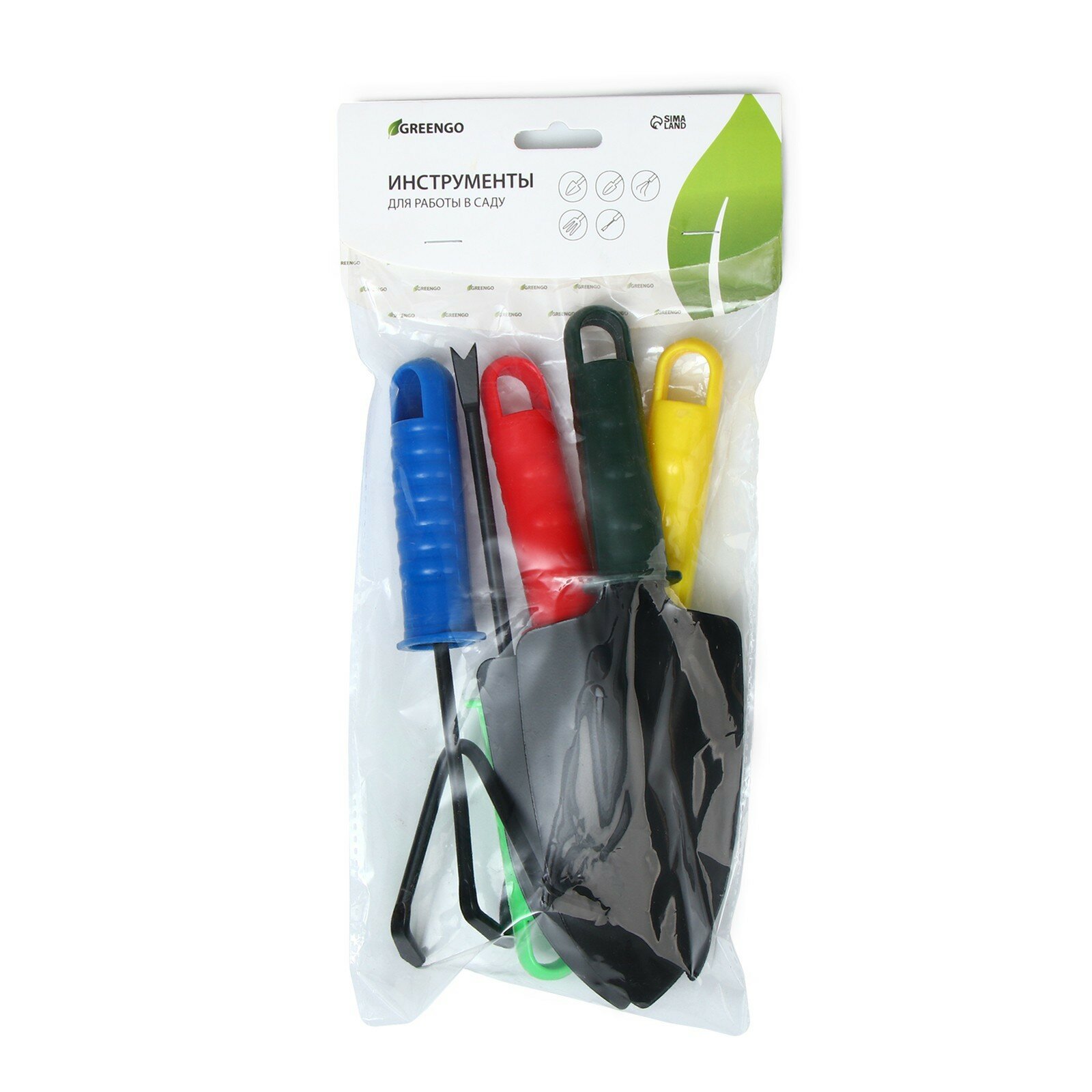 Купить Набор садового инструмента, 5 предметов: 2 совка, рыхлитель, вилка, корнеудалитель, длина 27 см, пластиковые ручки, цвет микс , Greengo