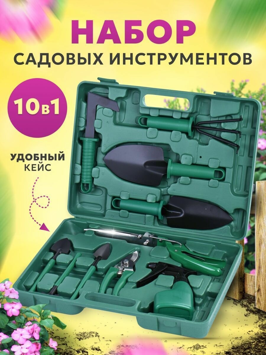 Купить Набор садовых инструментов для огорода и сада 10 в 1, кейс для хранения