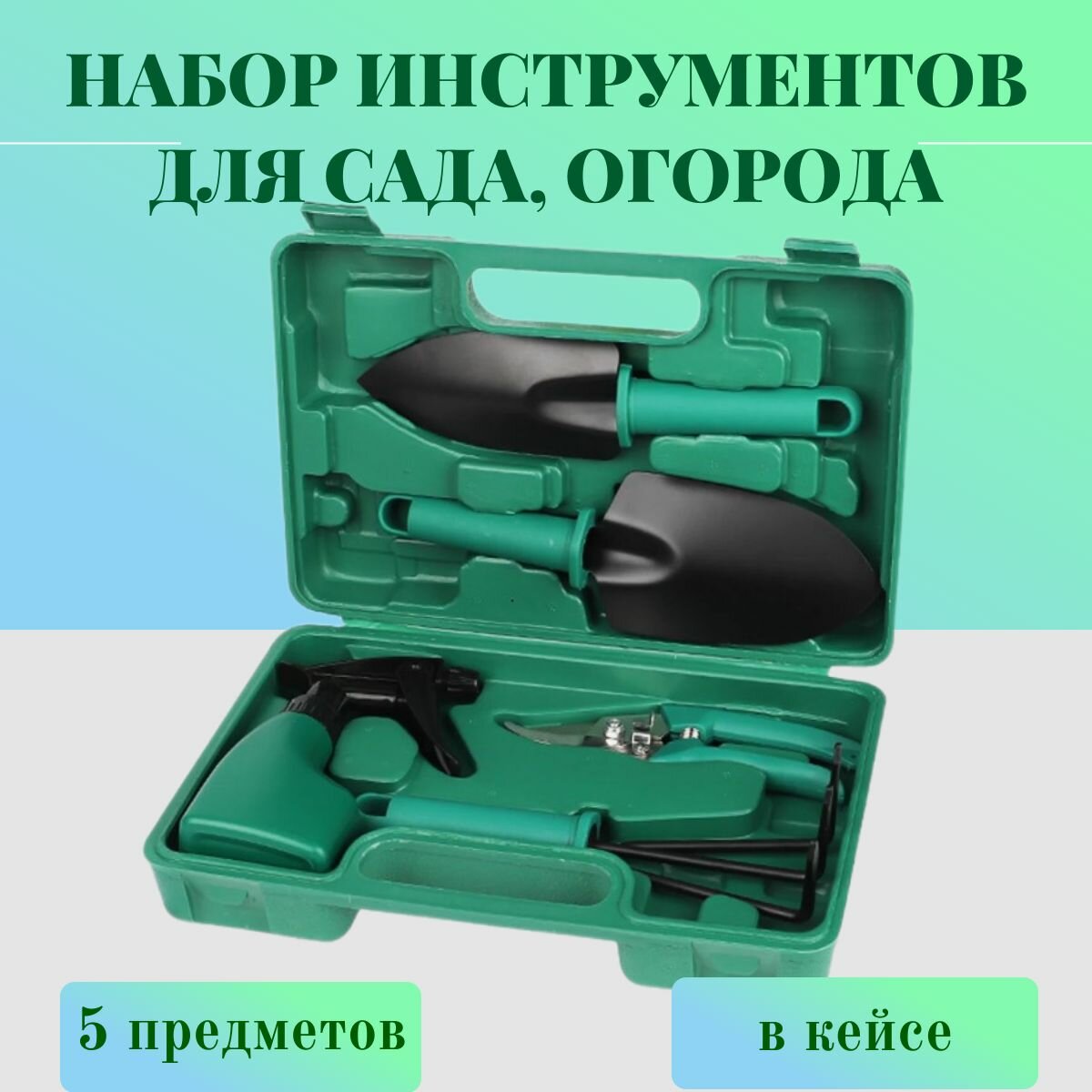 Набор садовых инструментов 5 в 1 для прополки и посадки растений в зеленом кейсе интересное: