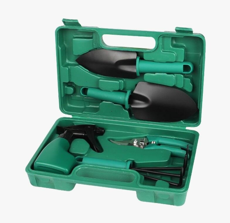 Купить Набор садовых инструментов 5 в 1 для прополки и посадки растений в зеленом кейсе
