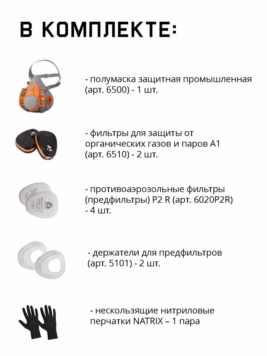 Комплект защитный Jeta Safety 6500 (перчатки, полумаска, фильтр, предфильтр, держатель) размер М