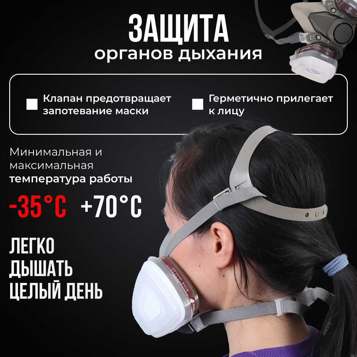 Купить Профессиональный респиратор противогаз маска защитная 6200 замена 3М с угольным фильтром от химии, Master Pokupok