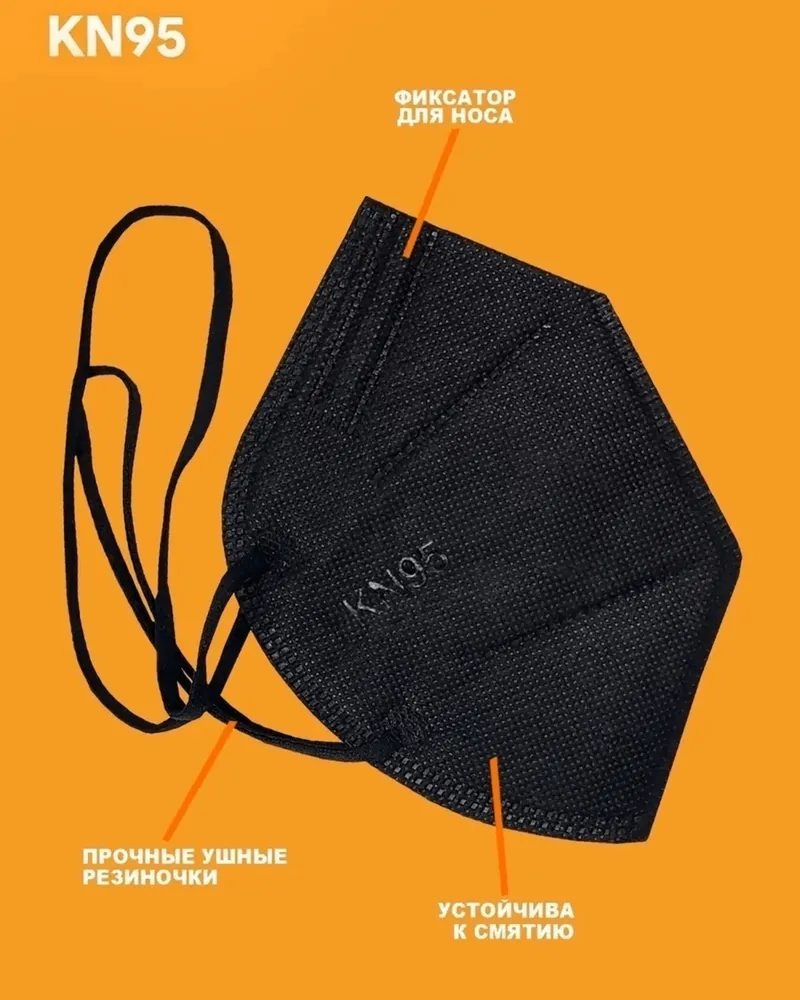 Универсальный респиратор без клапана KN95 BLACK черного цвета, ГОСТ Р FFP2, 20 шт. интересное: