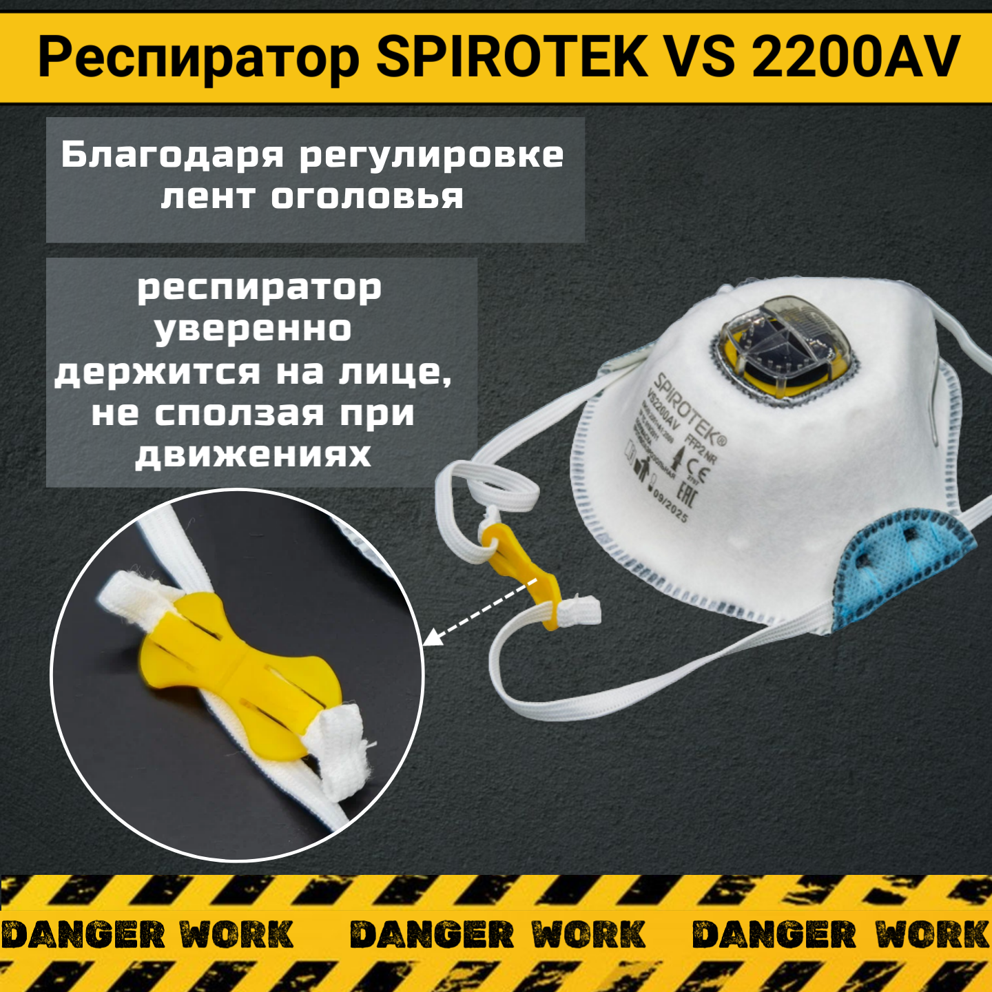 Респиратор - многоразовая маска Spirotek VS 2200 AV c клапаном FFP2, защита при сварочных работах, 100 шт