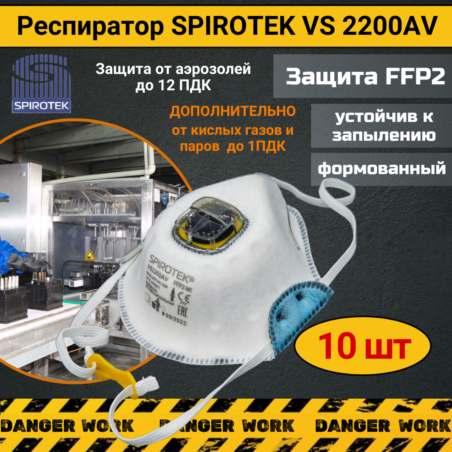 Респиратор - многоразовая маска Spirotek VS 2200 AV c клапаном FFP2, защита при сварочных работах, 100 шт